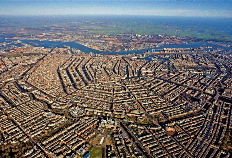 O nome Amesterdão significa “barragem no rio Amstel” para se referir à infraestrutura construída para gerir a posição precária de uma aldeia em crescimento no Período Medieval. Com o avanço do mar, a cidade acabou por se tornar costeira, ganhando outra atração para o comércio. Mas este avanço também acabou por implicar séculos de drenagem, bombeamento e construção de diques para adaptar a cidade à subida marinha.