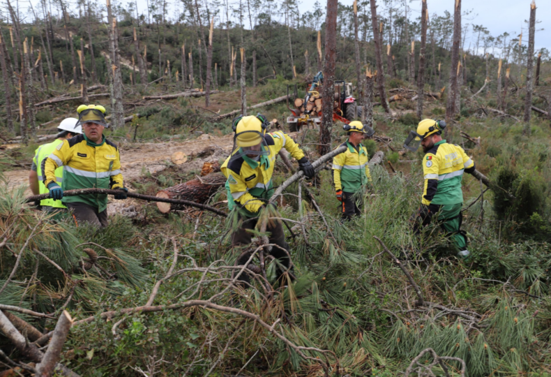 Ao todo são “cerca de 100 mil metros cúbicos de madeira tombada”, o equivalente a 1.075 hectares em cerca de 11 mil hectares, onde ainda há cerca de metade dos caminhos para desobstruir.