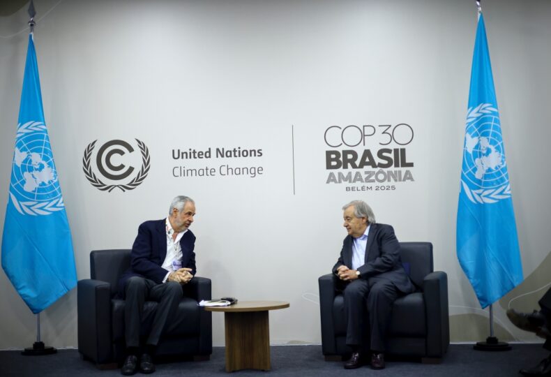 Presidente da COP 30, André Corrêa do Lago, em conversa com António Guterres, secretário-geral das Nações Unidas | Foto de Ueslei Marcelino/COP30