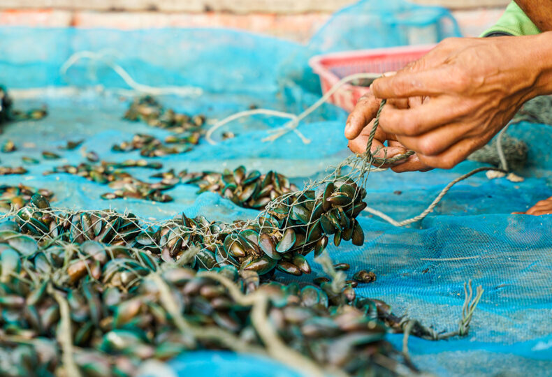 No passado, os pequenos mexilhões representavam 20% da colheita anual dos produtores da costa francesa. Entre 6 mil e 12 mil eram frequentemente devolvidos ao mar ou deixados a apodrecer. Neste contexto, as autoridades ambientais têm pressionado o setor a adotar cadeias de valorização totalmente reestreáveis, em vez de abandonar o despejo a céu aberto, até 2025-2026.