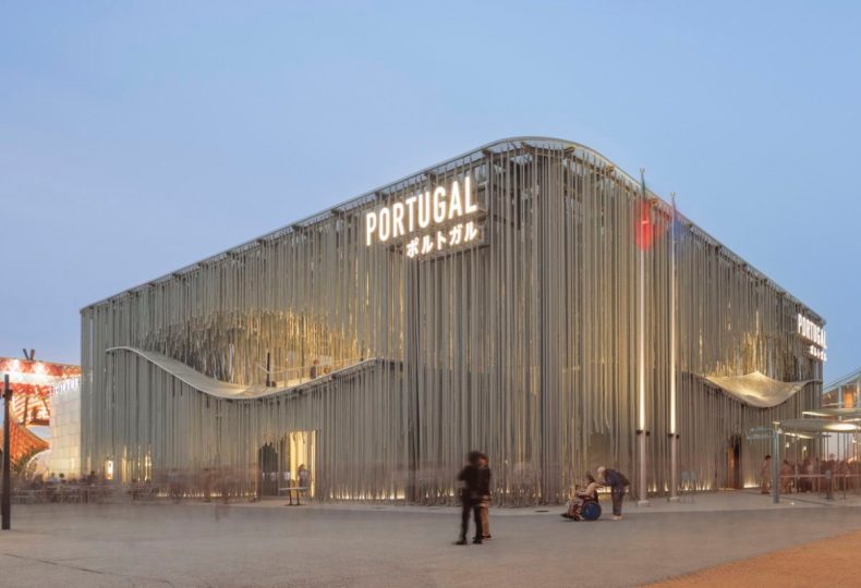 O Pavilhão de Portugal foi projetado pelo arquiteto japonês Kengo Kurma, com cordas suspensas e redes recicladas para realçar elementos como o sol e o vento, e planeado pela AICEP – Agência para o Investimento e Comércio Externo de Portugal, tendo já atraído cerca de 2 milhões de visitas.