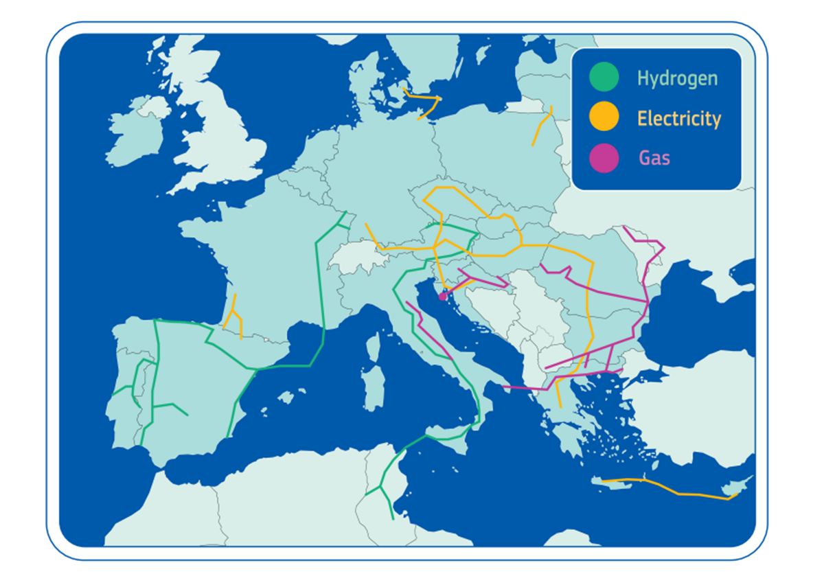 O plano destaca as ligações através dos Pirenéus para melhor integrar a Península Ibérica no mercado europeu, a conexão de Chipre ao continente, o reforço da ligação entre os Estados Bálticos via Lituânia e Polónia e a independência da energética da Rússia. Integra também uma plataforma ‘offshore’ de interconexão na Dinamarca com potencial para servir todo o Mar Báltico, bem como o aumento da capacidade de armazenamento no Sudeste europeu.