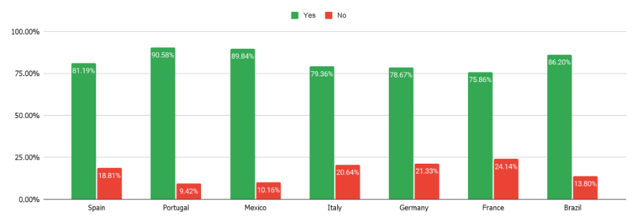 O Relatório Global de Consumo MARCO 2025 foi feito entre maio e junho de 2025, em sete países. No total, participaram 4.598 pessoas de sete mercados estratégicos: França, Alemanha, Itália, Portugal, Espanha, México e Brasil, os principais países europeus e latino-americanos, segundo a agência.