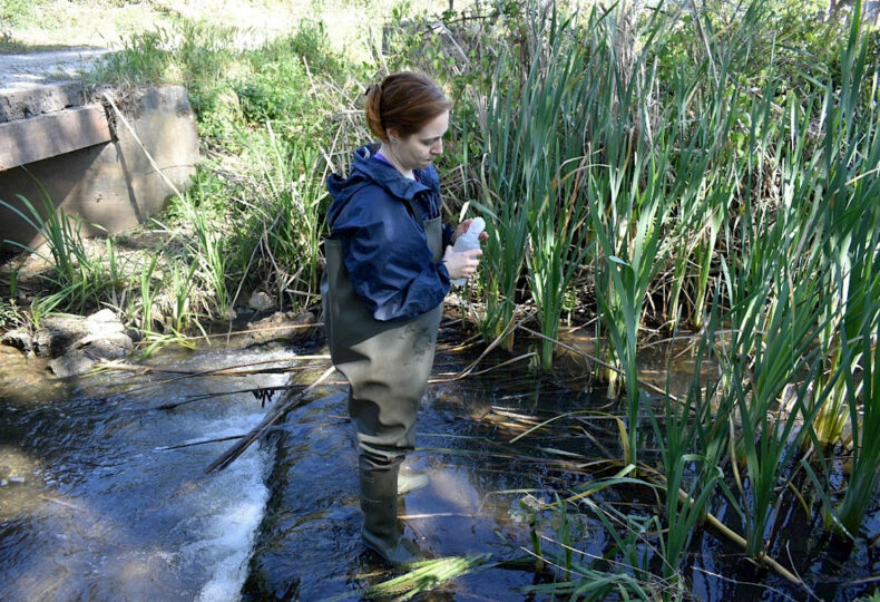 Recolha de amostras de agua na Ribeira da Corujeira, em Coimbra